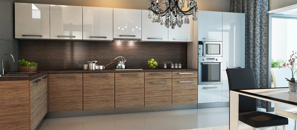 A kitchen with upper kitchen modules is a versatile option: suitable for both spacious and small-sized rooms. When the kitchen is less than 7 meters, it is necessary to use every centimeter functionally. In this case, the upper kitchen cabinets are the only safe way to put all the necessary utensils in the room.