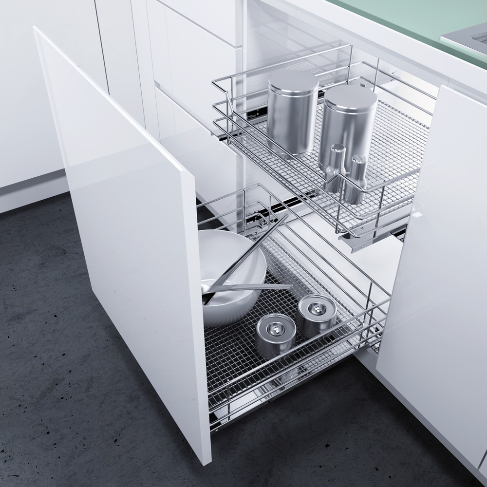 Not less functional and attractive in appearance are pull-out baskets.Most often, these options are used to store dishes.
