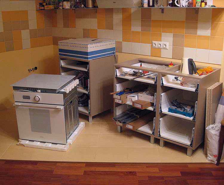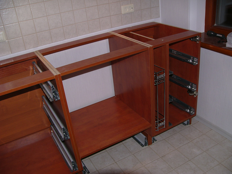 If you decide to independently assemble a retractable system for the kitchen, first decide on the appropriate material for the compartments. For these purposes are used MDF or particleboard.
