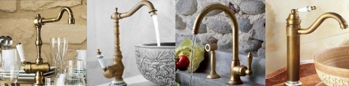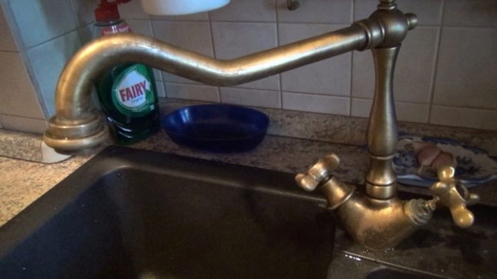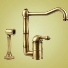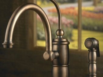 For the sink in the kitchen, they usually get a mixer with a high spout, so that it is convenient to wash a stack of dishes under a stream of water. In bronze, you can also make a tap from which filtered drinking water flows.
