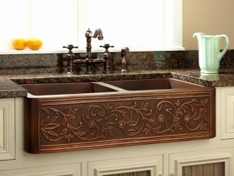 Stylish is the combination of the color and texture of the bronze mixer and the sink. Moreover, this option looks equally good both in modern interiors and indoors in retrostyle.