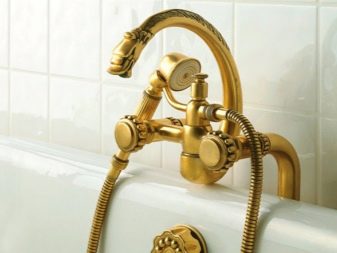 When choosing a bronze mixer, one should not be guided first of all by its appearance, but take into account design features. So, for the bathroom, you can purchase a traditional design that is installed on the edge of the bowl. This option is preferable in the stylized bathrooms, as well as with a lack of space in the room, irregular shape of the bathroom bowl.