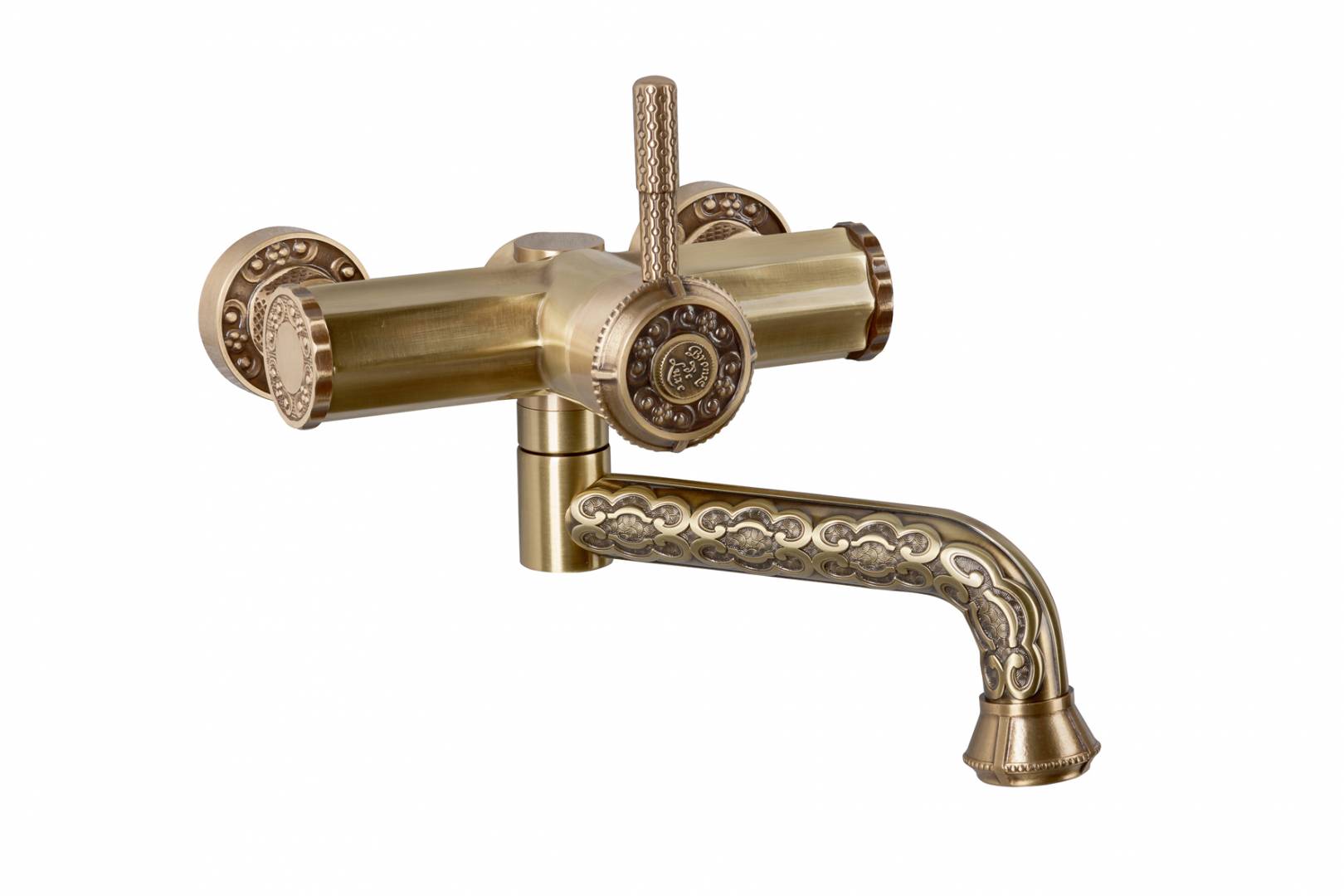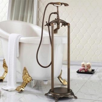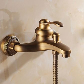 The wall version is usually chosen in antique-styled rooms. In some cases, it also serves as a shower faucet. Perhaps the only inconvenience is the great laboriousness of the process, since to install such a structure it is necessary to make a wall.