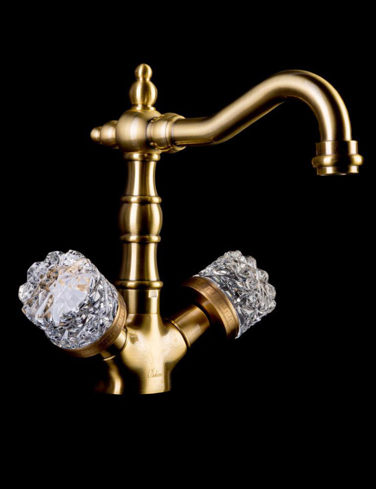 Bronze mixers are characterized by a long period of operation, they are resistant to high and low temperatures, pressure differences and chemical reagents. And thanks to the corrosion resistance of such a device for a long time retains an attractive appearance. In classic interiors, such a mixer looks stylish and noble, it will easily fit into an antique bath design, as well as fit into country style, etc.