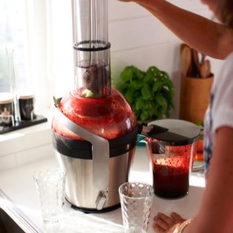 Blender, first of all, is designed for mixing products, but it also performs other functions, and the juicer performs only one of its main role-spinning. Of course, it is possible, by chopping vegetables or fruits for a long time with a blender, to make juice, but it will be very thick, and a large amount of pulp will float in it. That is why the function of the juicer in this device is indispensable.In this part of the design there is a special container for accumulated thick pulp, which allows you to separate it and get pure juice of liquid consistency. As a rule, in all such household kitchen appliances, these two elements function separately, having only a common basis and common power supply from the network.