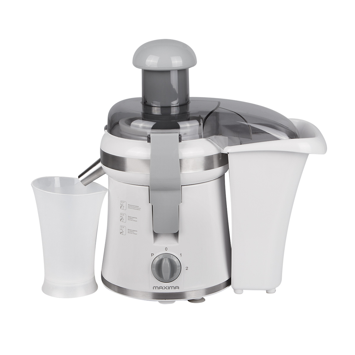 The design is also equipped with an automatic circuit breaker, which prevents the motor from burning out. You can also adjust the speed: there are 2 speeds and a pulsation function. The speed of the juicer in this device is 13000 revolutions per minute. This model is made in Malaysia, it has a good, reliable and high-quality design.