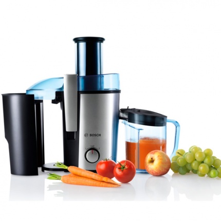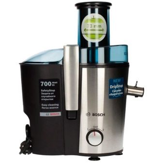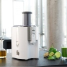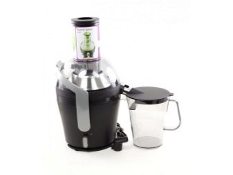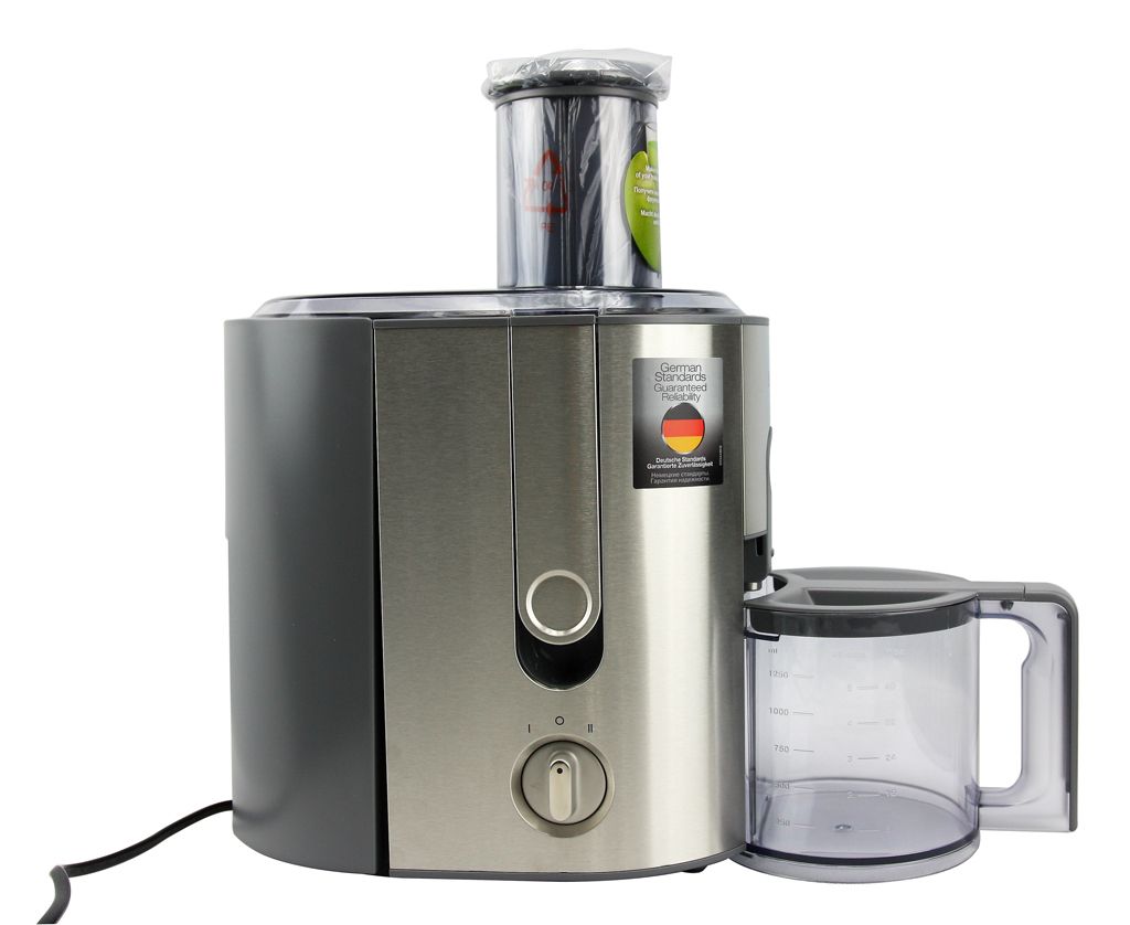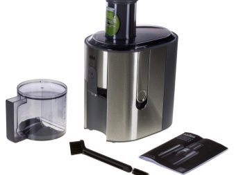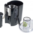 Excellent inexpensive centrifugal juicer. It is produced in a plastic case in white or black. The power of the unit is 240 W, the capacity of the juice bowl is 1.25 liters. The advantage of the model is that in case of improper assembly or any malfunction the kitchen appliance does not turn on.