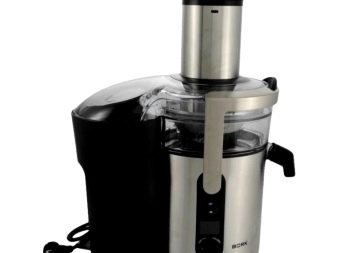 The stylish and externally attractive centrifugal juicer is made in a laconic design in black color, has silver inserts. The model is equipped with a wide bore receiver that allows you to download some products entirely. It works at two speeds, is equipped with a high security system, there are functions “stop-drop” and “dumping of cake”.