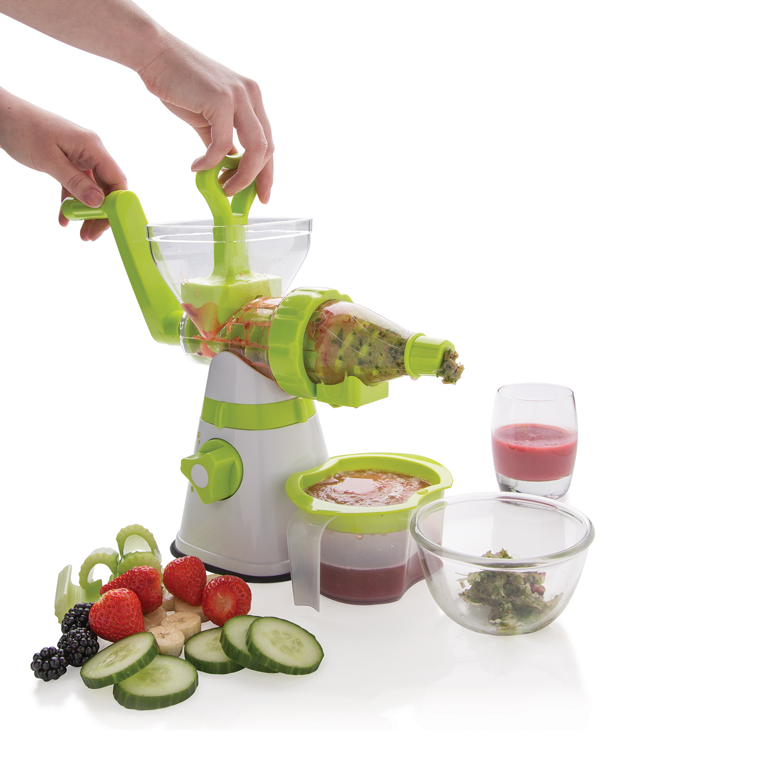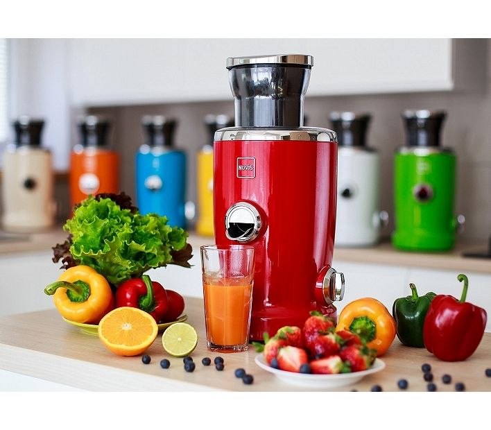 - centrifugal. Juicing with the help of such machines is as follows: the fruits (fruits, vegetables, berries) are placed in the bowl on top of the machine; the juicer crushes them with disc-shaped knives, after which the juice flows into a special container, and the remaining waste enters the separator.In this procedure, the temperature inside the device rises, as a result of which the products heat up and the juice is slightly oxidized. Because of this, some of the vitamins are lost and the drink becomes less useful. Another disadvantage of the centrifugal juicer is the impossibility of using it to squeeze the juice from the herbs for the preparation of "green" detox cocktails. However, don’t be in a hurry to be disappointed in devices of this type: after all, if you want to squeeze juices from hard fruits and vegetables (for example, carrots, apples) every day, and you also need to process a large amount of these gifts of nature, centrifugal juicers are exactly need to;