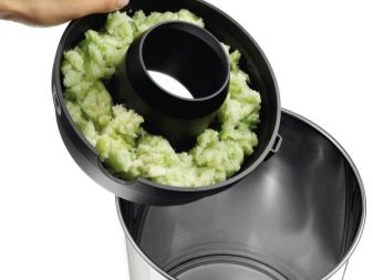 However, screw devices have some drawbacks. Juice, obtained by pressing this model, is very concentrated, with a lot of pulp.Therefore, drinkers without pulp will have to use a strainer. And if you squeeze the juice from overripe or highly softened ingredients, there is a risk to get a drink that is similar in consistency to mashed potatoes. In addition, you should pay attention to the fact that if the model has a narrow neck, then the fruits will have to be pre-crushed.
