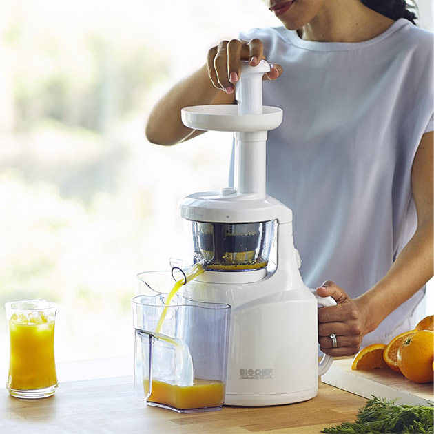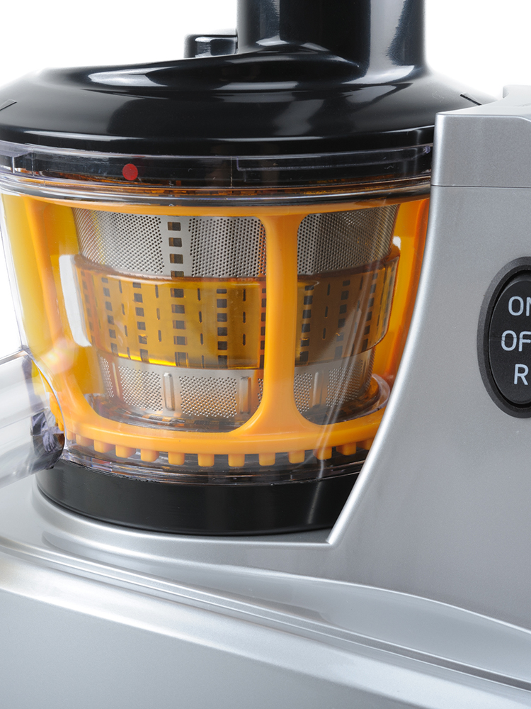 Also, vitamins, minerals, enzymes during the extraction of juice in the centrifugal model are destroyed due to the high frequency of circulation and due to the heating of the motor during the spin process.