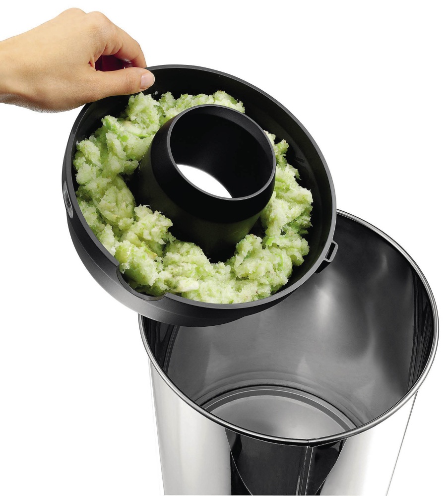 The centrifugal juicer is classic and most used. The centrifugal force of this unit separates the juice from the pulp. At the same time, the cake moves along the device at a sufficiently high speed. Due to the high frequency of circulation, the pulp settles on the walls,and the drink flows through special tubes into a container.