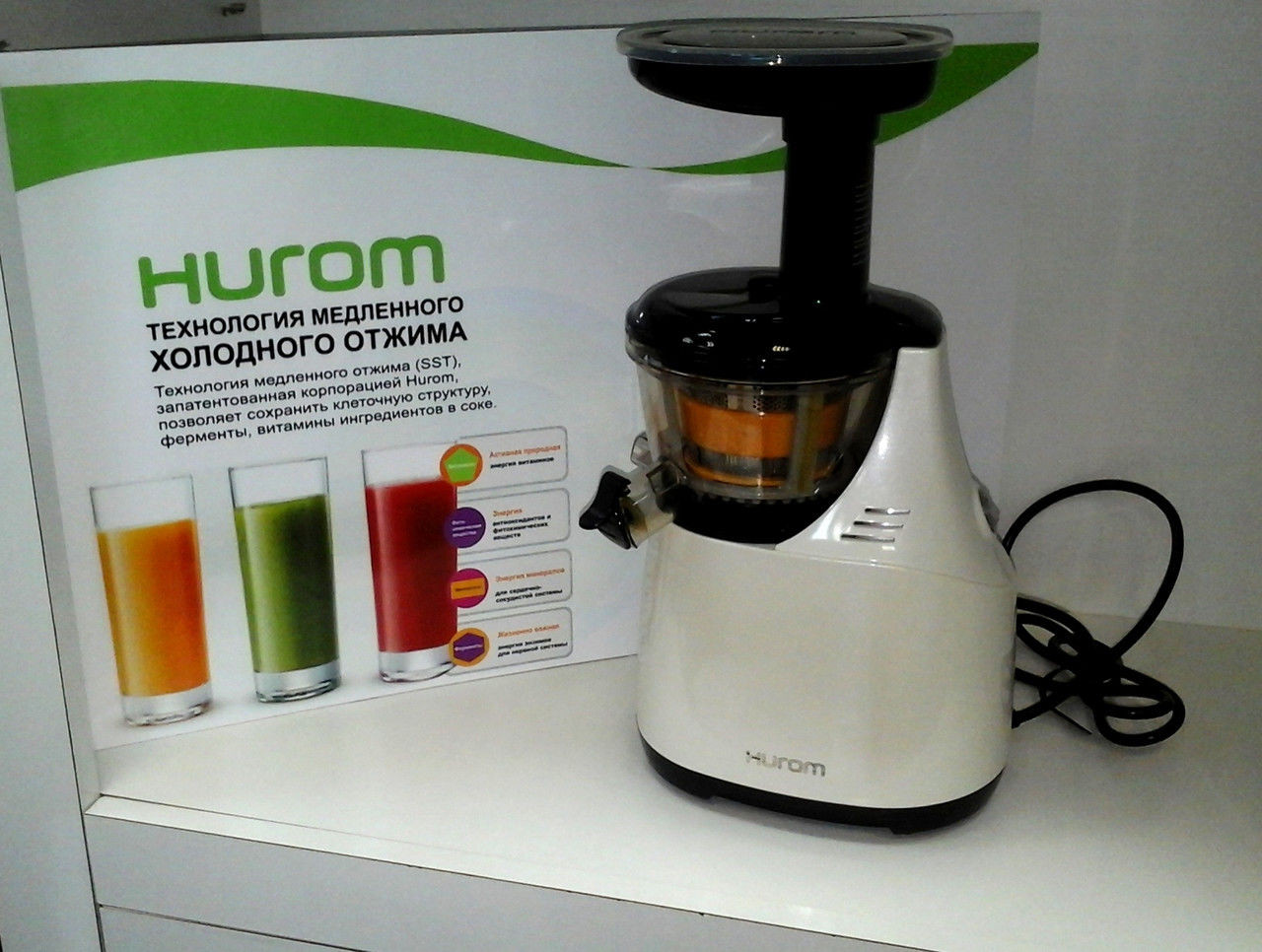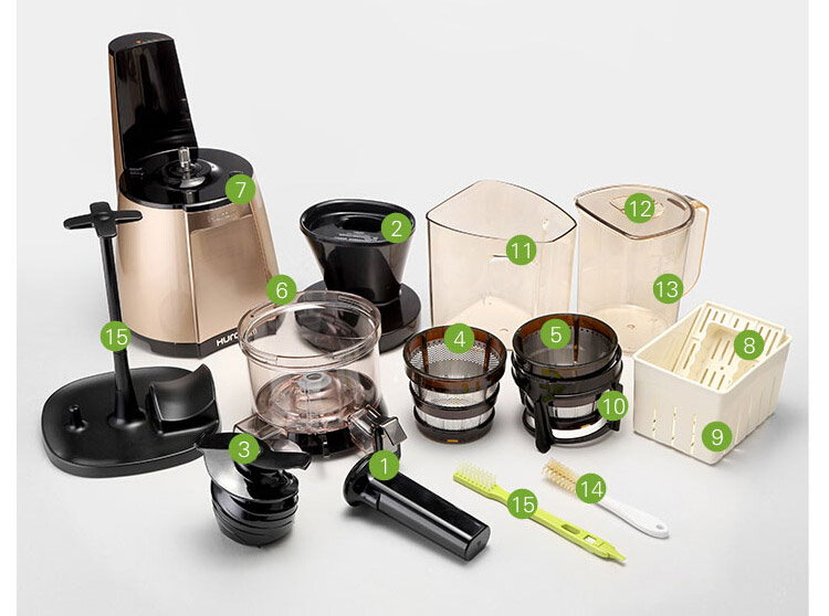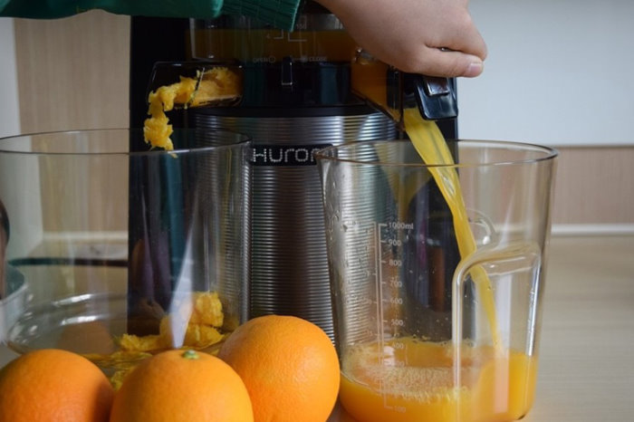 - Efficiency and quiet work - important quality household appliances brand Hurom. Due to the fact that the shaft rotates at low speed, the noise level is reduced. This is convenient, especially when you need to make a drink in the late evening or early morning.
