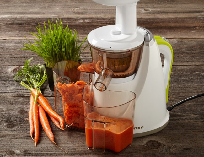 With the help of the Hurom juice extractor you can prepare healthy freshly squeezed juices from all kinds of fruits and vegetables.. This household appliance is a real miracle from South Korean manufacturers in the kitchen of a modern hostess.