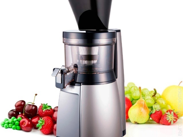 It allows you to diversify the diet of delicious drinks, prepared according to a special technology of auger low-speed cold pressed. This method consists in the fact that products are slowly rubbed through a special basket using a vertical auger. This allows them to preserve their natural taste and beneficial substances. Juices are homogeneous, fragrant, nutritious and saturated.