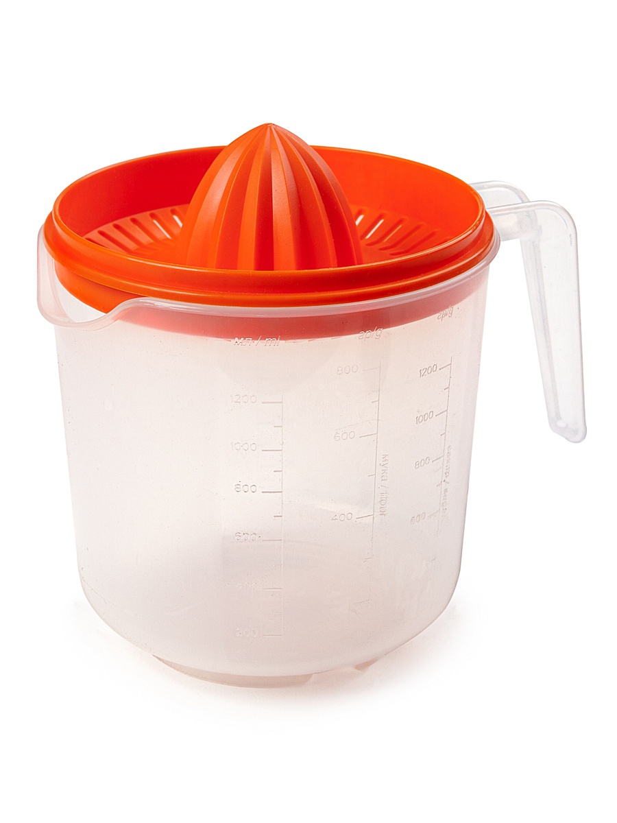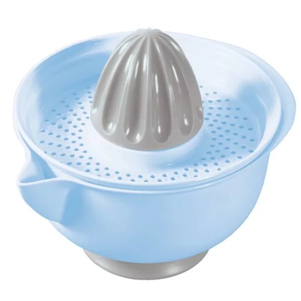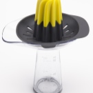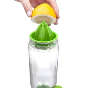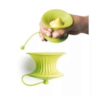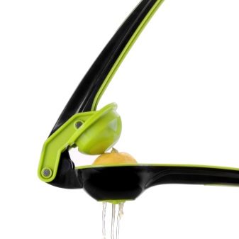 Made from colored durable food aluminum, it is very durable, durable and quite affordable (about 650 rubles), and it also has a silicone liner in the form of a fine-mesh sieve to control the penetration of pulp and bones.The main disadvantage - the final amount of the drink depends not only on the size and juiciness of the fruit used, but also on the force of compression. But it is convenient for obtaining a small amount of juice when preparing cocktails or salad dressing.