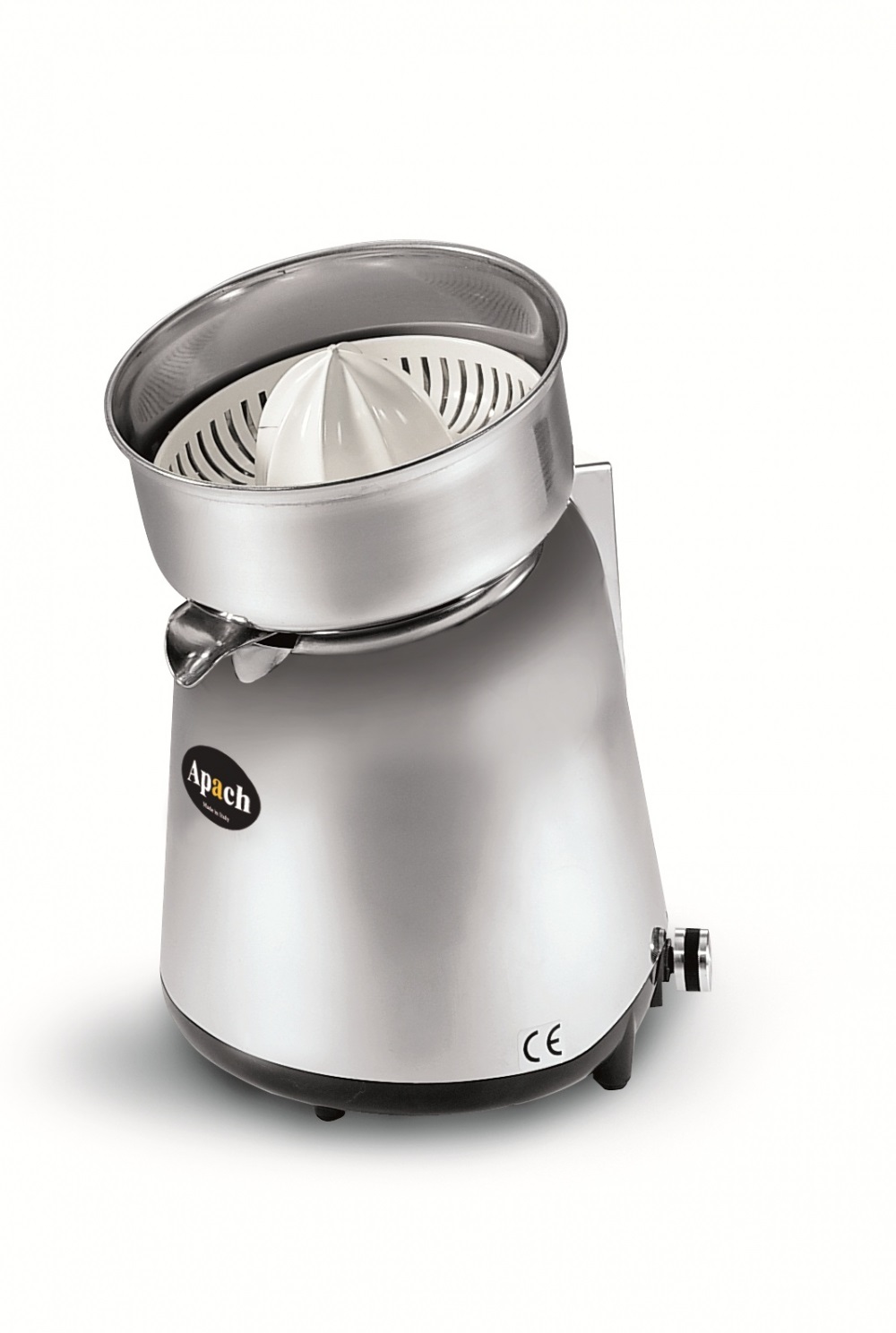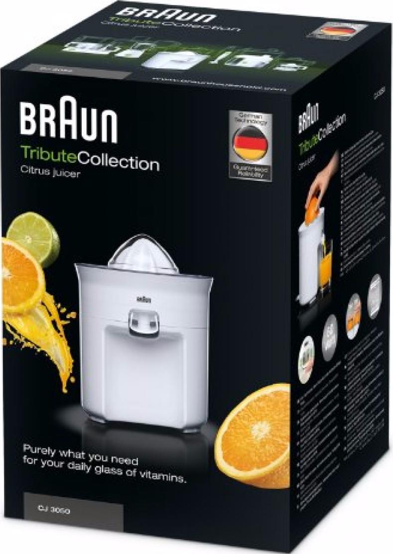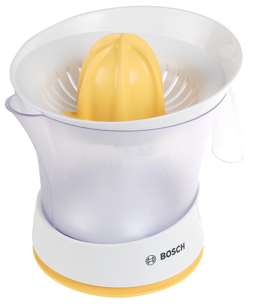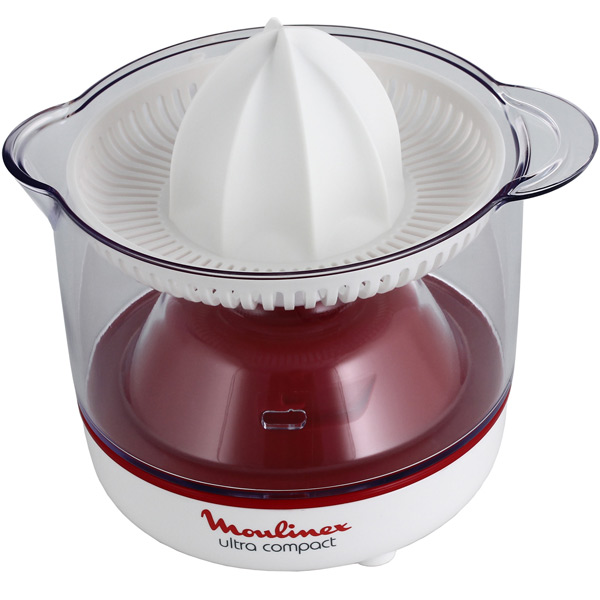 The most popular version of the budget electric citrus juicer is the compact cone press Braun MPZ9 with a convenient removable liter jug to collect the finished juice, with a quiet motor power of 20 W and a maximum screw rotation speed of 59 revolutions per minute.Made of light food-grade plastic, equipped with a system for adjusting the consistency of pressed juice and a lid to prevent dust from entering.