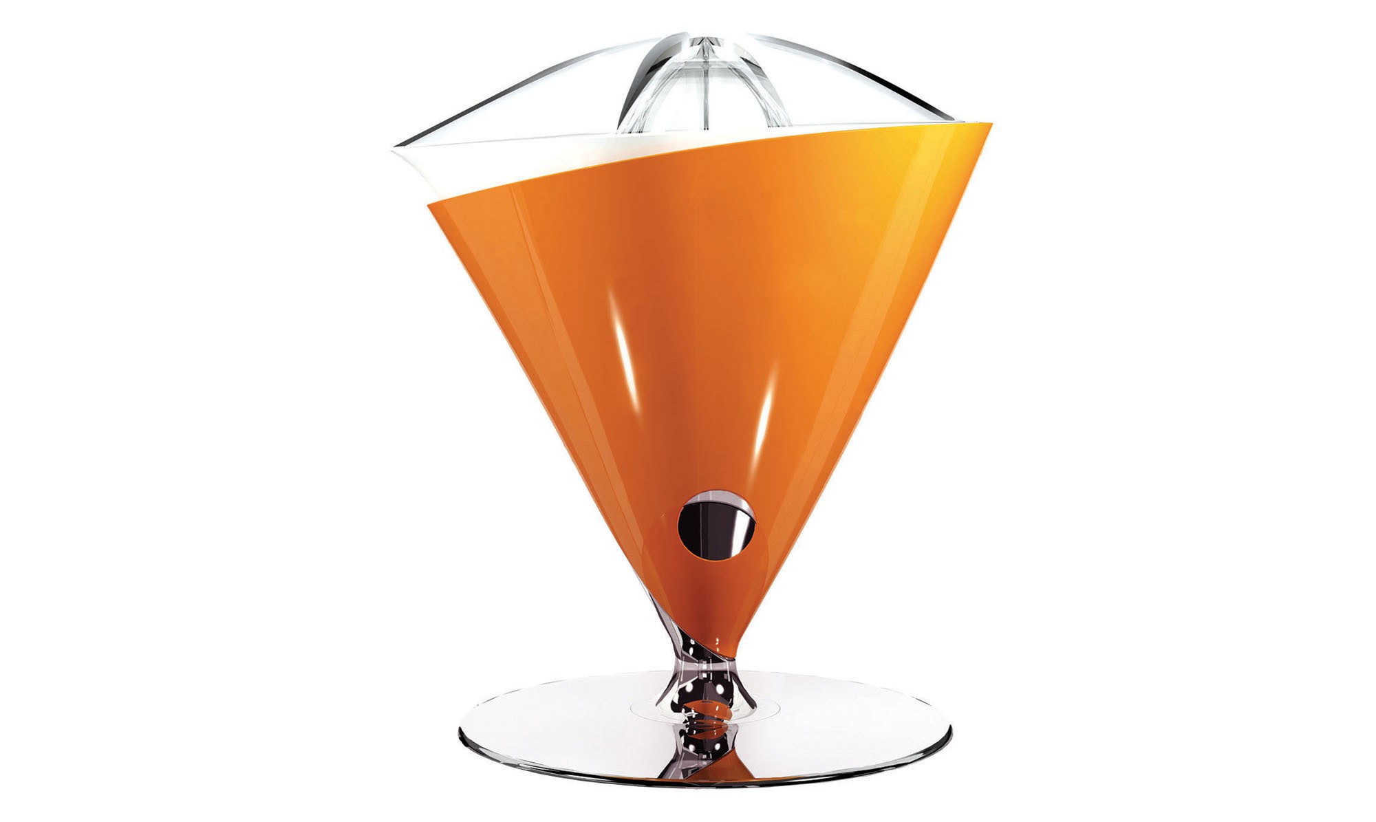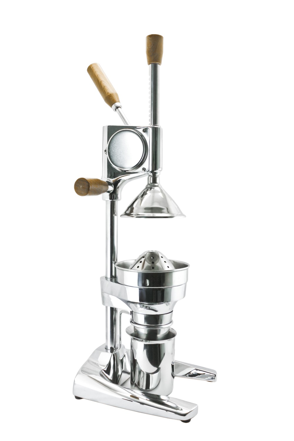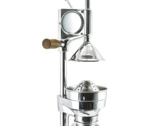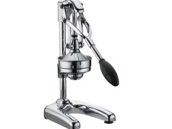 The next one in terms of functionality and efficiency is recognized by the professional press Excellent made in Germany. This mechanical nickel-plated juicer costs around 8,000 rubles and helps to get the maximum amount of juice without much effort, not only from citrus fruits, but also from pomegranates, squeezing them literally to dryness. Made in the form of a fairly high weighty lever, supported on a bowl for fruits, mounted on stable legs, equipped with rubber pads, which provide both reliable adhesion to the working surface and its protection from damage.
