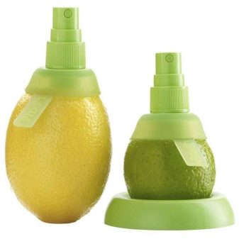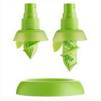 A juicer spray is usually sold as a set of a bowl for fruit and a spray bottle with two nozzles (long — for grapefruits, oranges and lemons, short — for limes and tangerines). It is very convenient when serving lemon and lime to the table (for sprinkling dishes) and during short storage in the refrigerator. Surprisingly, it completely squeezes out the ripe soft citrus fruit (firmly better pre-mash) and besides, it does not stain hands and excess dishes, and there is only one drawback - it is not suitable for industrial use.