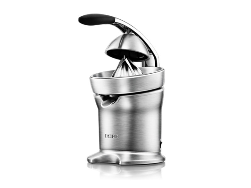 The top line of the rating is rightfully occupied by the stylish and practical BORK Z800 juice extractor, which always causes only rave reviews from all who use it. Made of stainless steel, completely silent and very stable in operation thanks to rubberized legs and a quiet motor with a power of 120 watts. Equipped with overload protection, pulp regulator and drop-stop system. Squeezes out citrus fruits without additional efforts literally to dryness, does not splash juice and does not stain hands, is easy to clean (including in the dishwasher) and is stored in the case included in the kit together with the convenient lid from dust. Among the minuses, there is only a high price (about 29,500 rubles) and the need to cut very large fruits.