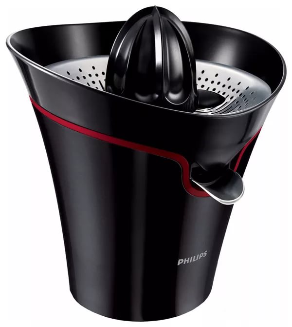 In second place in popularity and first in high-performance - a combined juicer Philips HR 1870, worth 14,000 rubles. Easily and quickly squeezes the juice from a large number of not only citrus fruits, but also any other fruits.High-speed motor with a power of 700 W, a roomy 1.5 liter container for ready-made juice, an automatic pulp discharge system and the ability to regulate it in a freshly squeezed beverage, protection against accidental activation, a drop-stop system, a wide compartment for fruit filling, a special nozzle for spinning citrus and excellent quality components - this is not the whole list of advantages of this universal unit, the cons of which have not yet been noted by anyone.