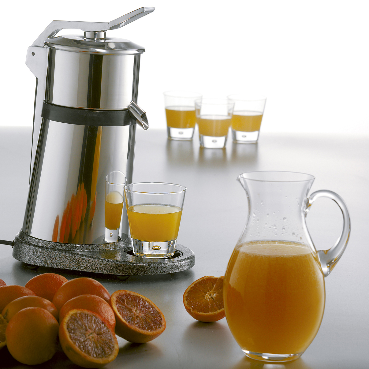 To squeeze the juice, simply lower the lever on the fruit half, placed in the bowl - the juice will flow out into the container carefully placed underneath.Among the reviews in the minuses credited lack of automatic discharge of pressed pulp, but among the impressive advantages appear reliability, high performance, stability and ease of operation, durability, practicality, as well as excellent quality and large volume of juice squeezed out easily and simply, but the possibility of using this juicer in cafes, bars and restaurants.