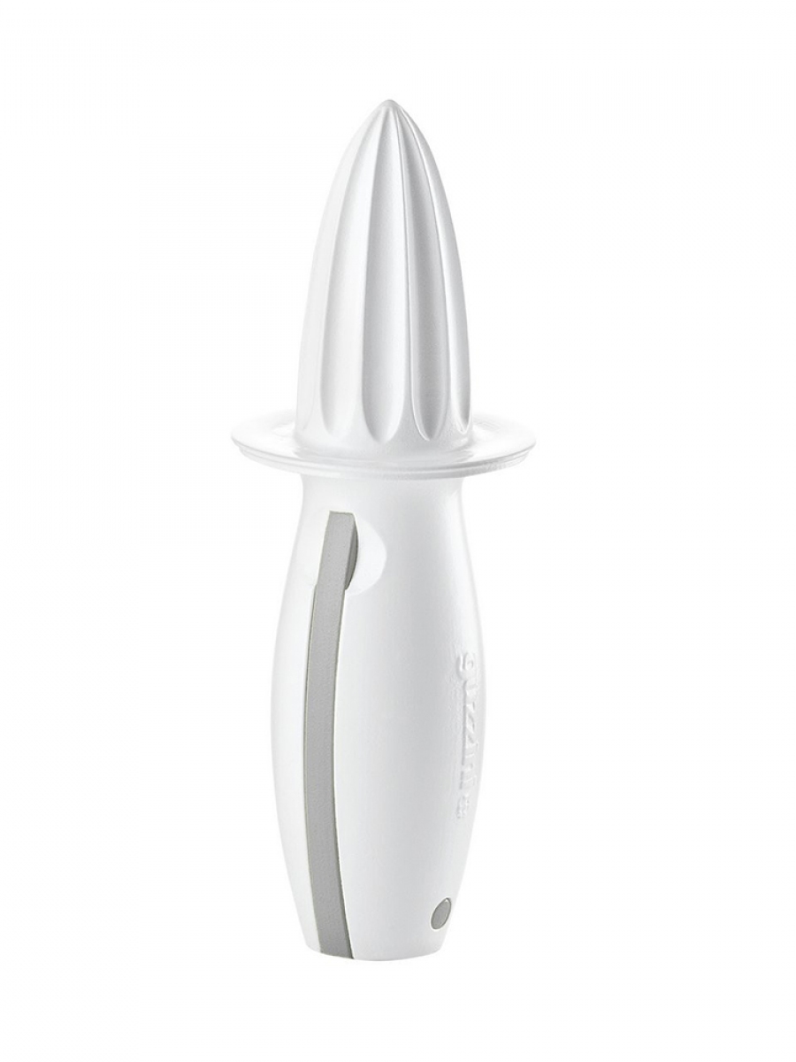 The original juicer-spray of the Spanish company LEKUE is quite easy for a wallet (760 rubles), and for weight (from food-grade plastic), and for use. It is enough to cut off the citrus hat, deeply screw the screw dispenser into its soft middle and press the cap - everything, the juice is sprayed freely and abundantly where you need it: at least for fish, at least for a cocktail, at least for dessert, at least for a salad, and even on the skin of the face or hands, turning into a refreshing and natural tonic.