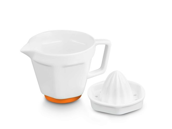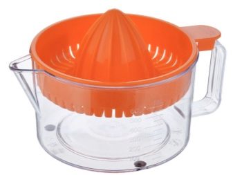 The best materials for the manufacture of manual citrus juicer are durable food grade plastic and stainless steel. In terms of volume and shape of the body, the product must meet the required volume of freshly squeezed juice. For ease of overflow, you must have an elongated spout.