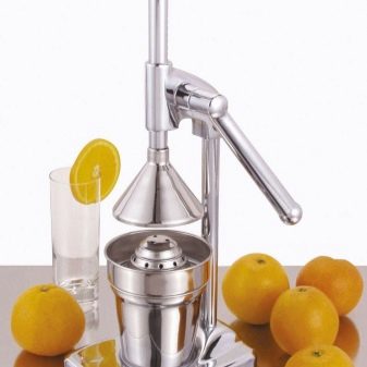 Such a device will appeal to all lovers of citrus juice. The design of this device is not complicated and convenient, thanks to a special mechanical control that does not require significant application of force. Such juicers are not only for oranges and lemons - you can also squeeze tomato juice, pomegranate and from some other fruits.