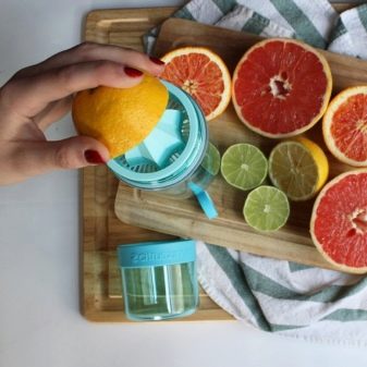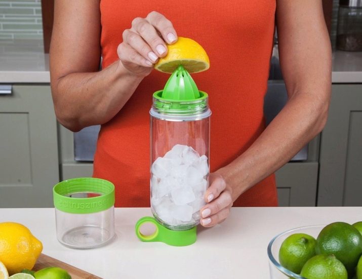 When the process is complete, the device is rinsed under running water.This model is very convenient to use when you need very little juice, for example, for preparing a cocktail or for dressing a salad.