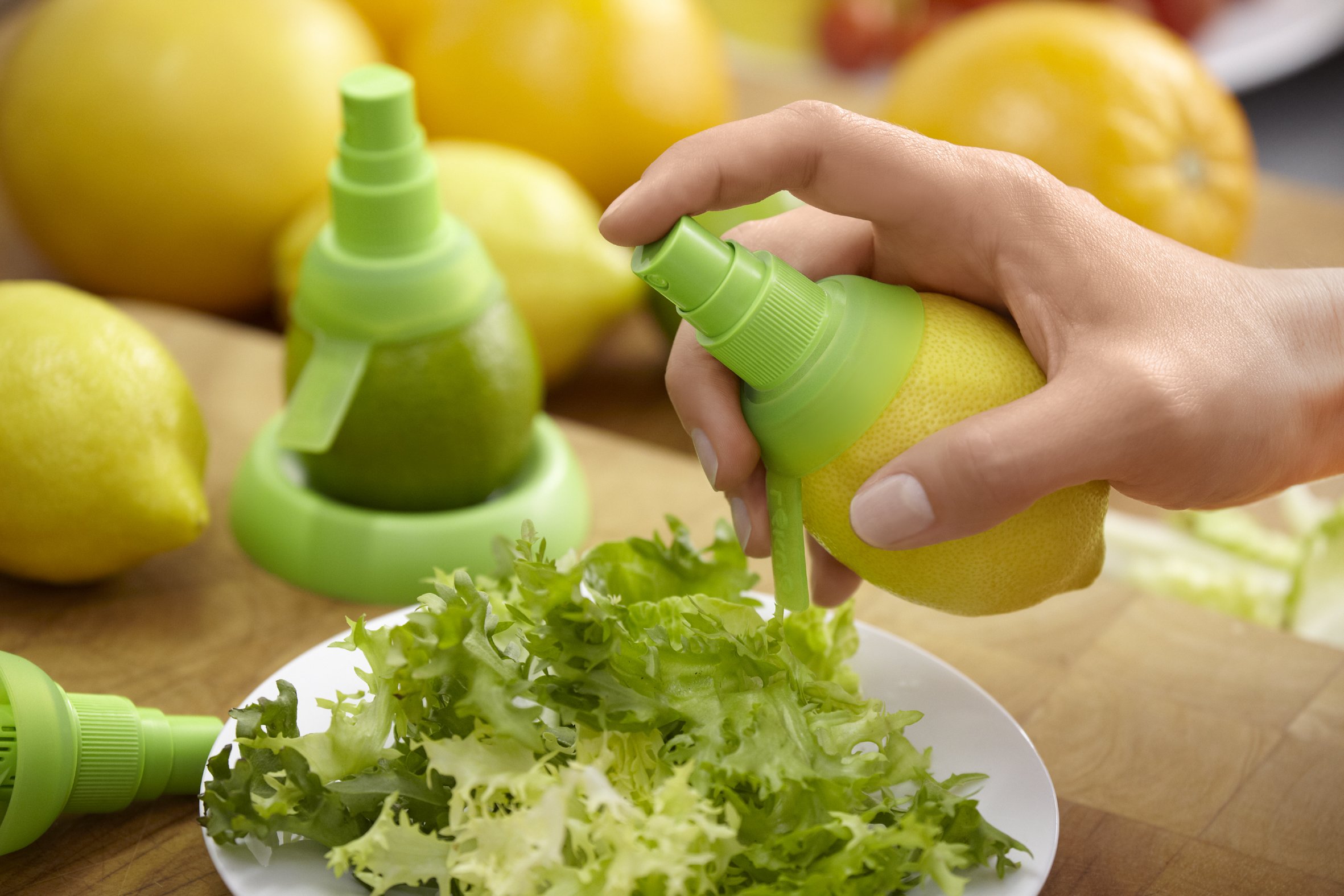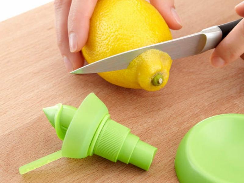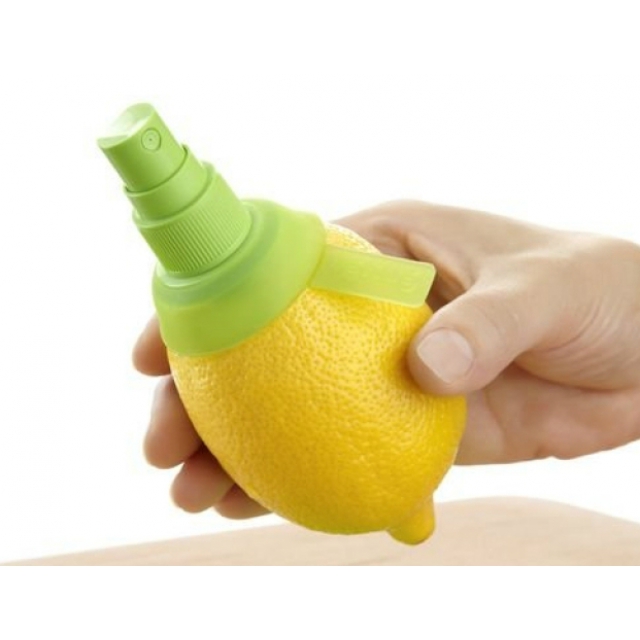 This device is designed for the same purpose as the portable. At the beginning of use, a small piece of peel is removed from the lemon, a spiral tube is inserted into the hole as deep as possible. Now, if you press the spray head at the top of the device, then lemon juice will splash out of the sprayer.