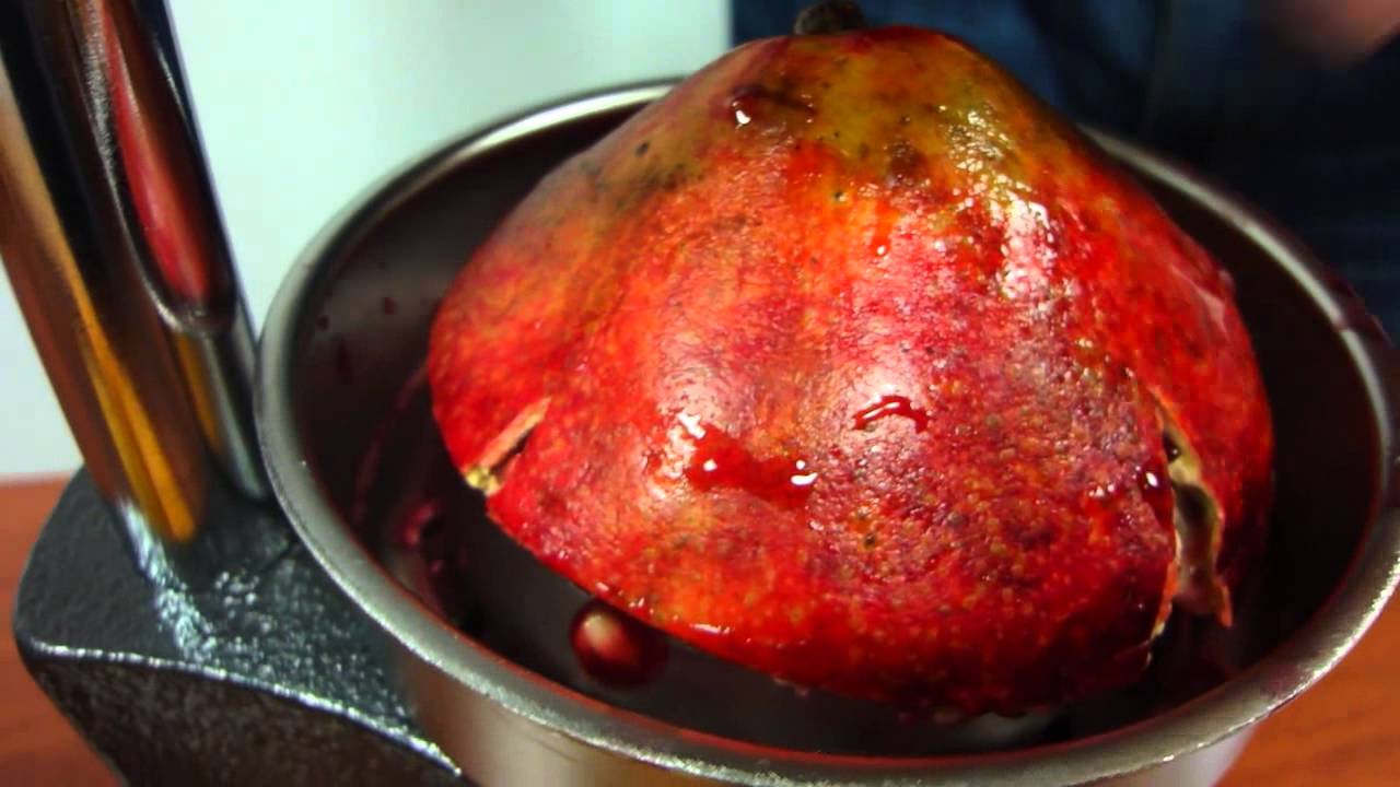 In this case, you can use the press for citrus, which has a mechanical lever control.If you are wearing a white blouse or a favorite dress, be careful - bright scarlet splashes from the fabric will not be easy to remove afterwards.