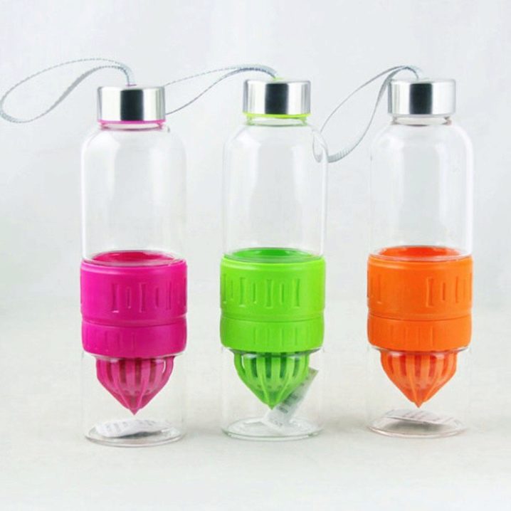 The kit consists of a bottle, a cap with a special opening, a juicer and colorful packaging. Attracts a beautiful design of the model and a variety of color options.