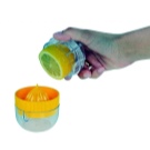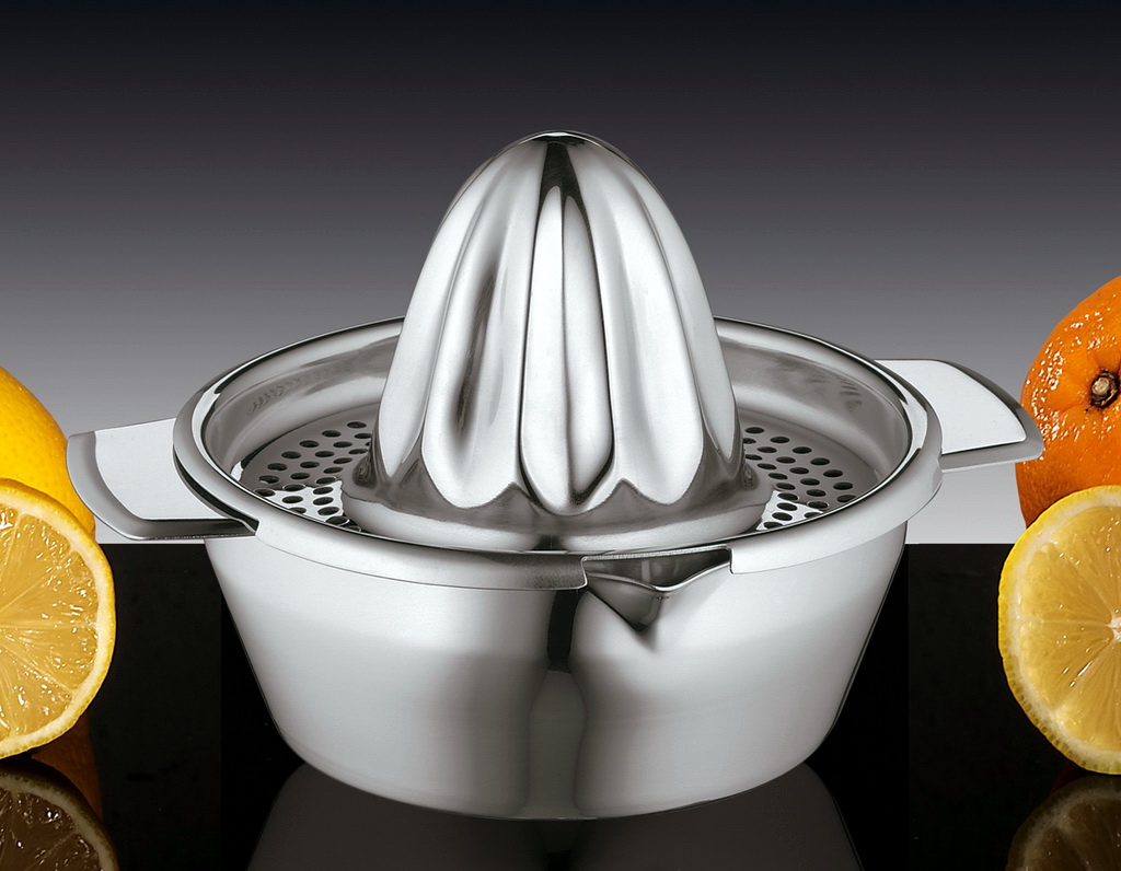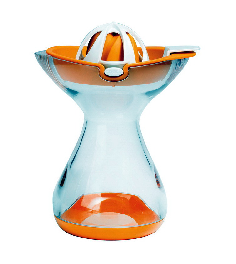 - Juicers brands Fackelmann and Tupperware designed to squeeze the liquid from citrus fruits. Buyers note the low price of this device, its ease and ease of use. Many people write that even a child can cope with such a squeezer, it is completely safe. The German juice extractor brand Fackelmann costs only about two hundred rubles, it is made of light plastic and consists of a ribbed nozzle and a container for collecting juice with a spout and handle.For juice, you only need to cut the fruit in half and scroll the halves on the nozzle.