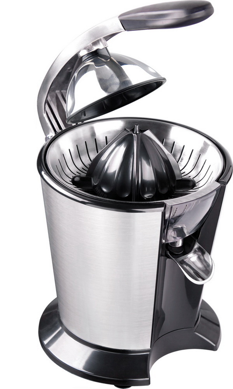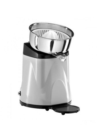 With the help of the second type of this device, it is possible to squeeze out only citrus fruits of orange, grapefruit, lemon, mandarin. Their action is based on the movement of the motor. Besides it, the design consists of a cone-shaped nozzle with bulky ribs, on which half of the whole fruit is placed.
