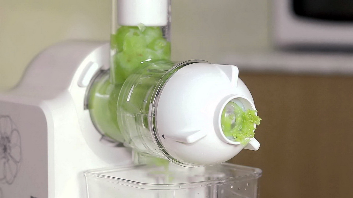 Due to this principle of operation, pressed juice does not oxidize, and most of the beneficial substances of fruits and vegetables remain in it.This is achieved due to the rather low speed of rotation of the fruit inside.