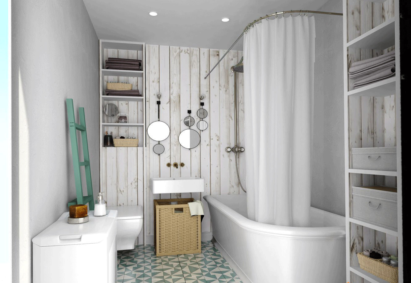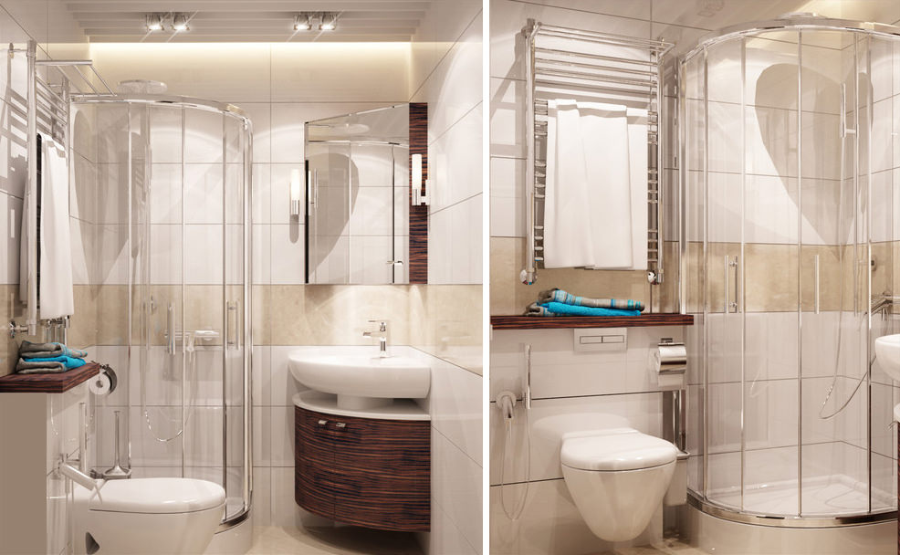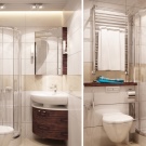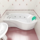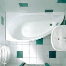 For the arrangement of the bathroom is better to use a shower cabin, because its size is small. For lovers of bath fit compact options of irregular shape. In addition, under the bathroom, decorated with a screen, it is convenient to store household items and household chemicals.