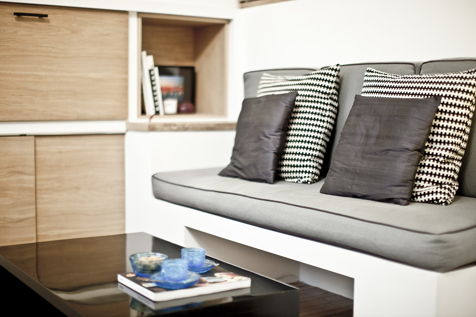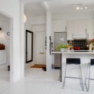 A partition made of plasterboard will help isolate the zones; it can be performed as a continuation of the kitchen unit or be part of a wall.