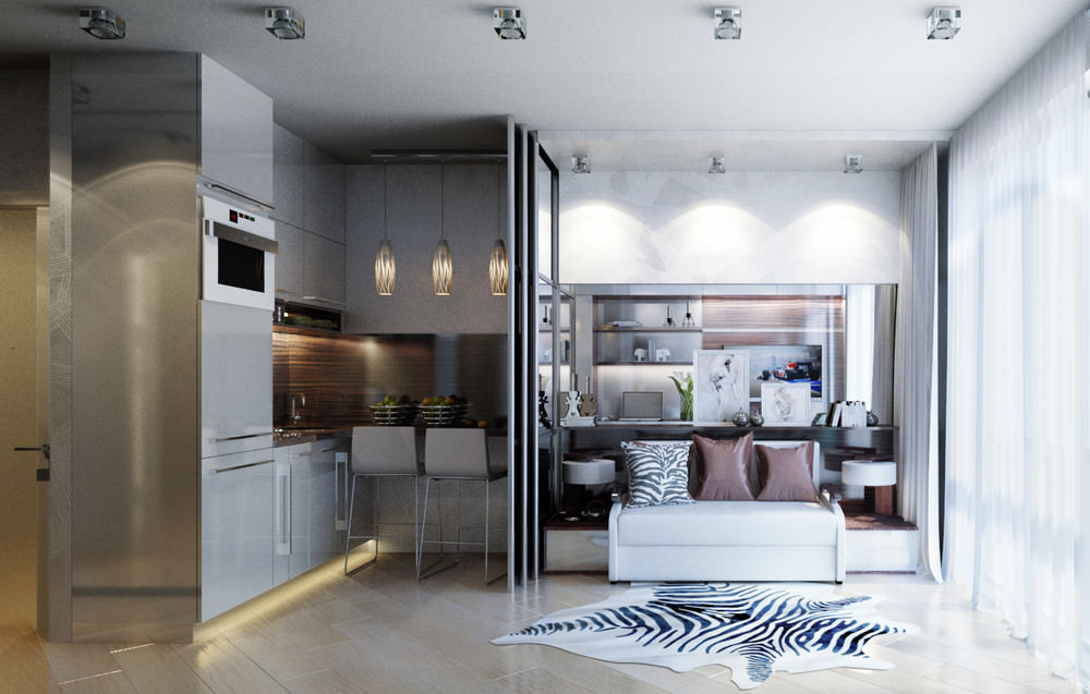 When making a studio apartment, you should adhere to a single style in design. For small apartments, minimalism, loft, high-tech styles are considered the most successful.