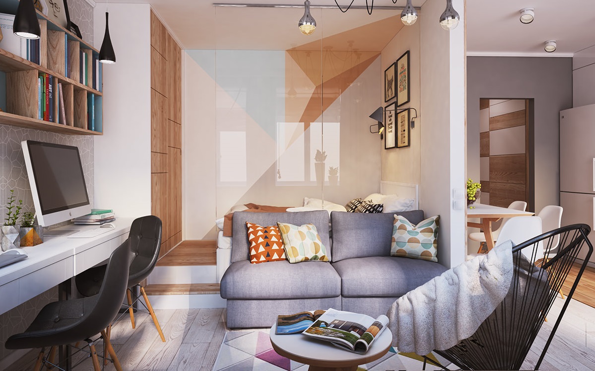 When arranging a small studio apartment, use compact furniture, light colors of the interior, but also do not forget about your personal taste. Only in the apartment, reflecting the individuality of its owner, it will be comfortable for you to live.