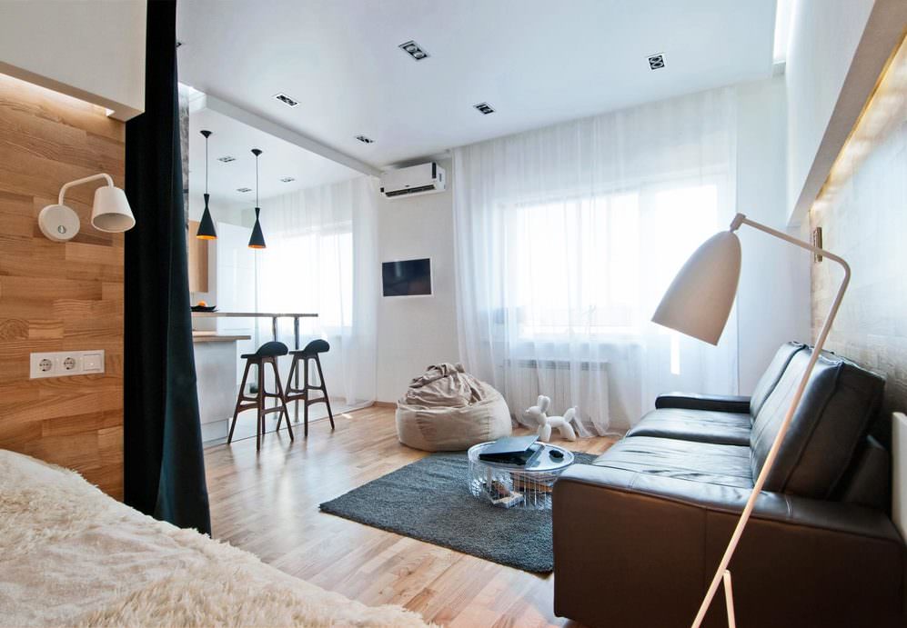 Since there are no partitions in the studio apartment, this gives a wide scope for the owner’s imagination in terms of zoning space. Which partition option to choose?