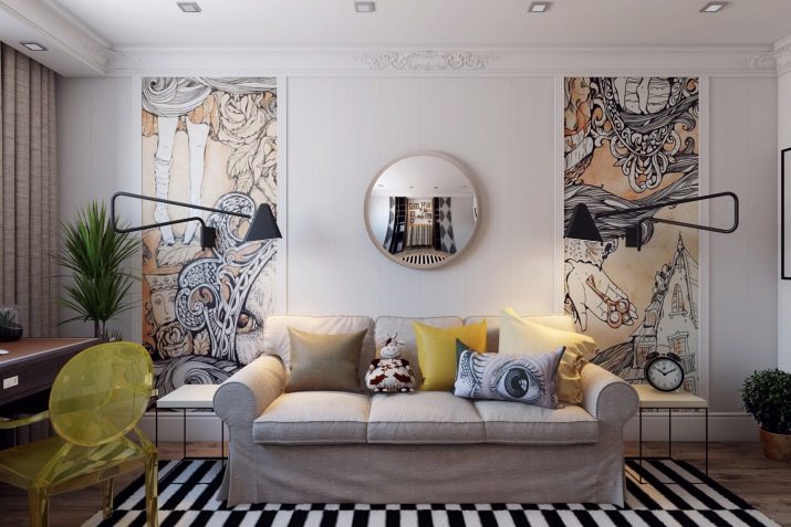 A good option of separation can be a sofa-sofa or a wardrobe, perpendicular to the main walls. Of course, such a design violates all the laws of planning, but it looks spectacular and quite modern in style.