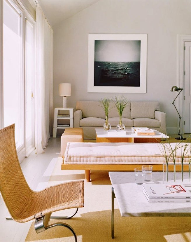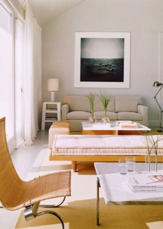 - You should not think that to save space it is necessary to arrange all the furniture only near the walls, and leave the center empty - in this case, the apartment will be too “uninhabited”, there will be no comfort. Put at least an ottoman or coffee table;