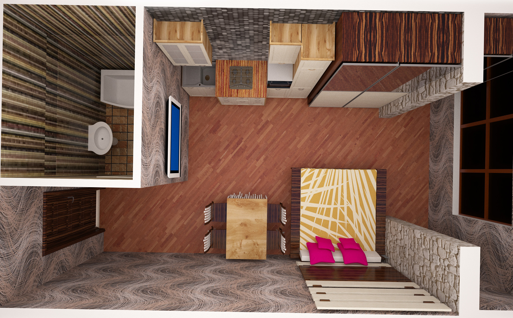 - You can repair and change the design of the room more often - it will be much cheaper and faster than in an apartment with interior walls due to their absence and a small studio area;