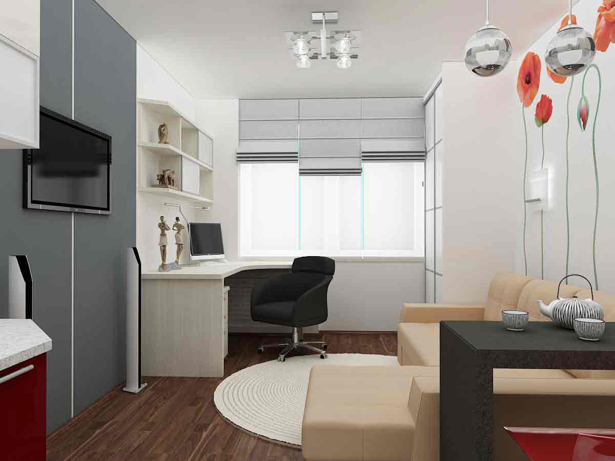 - As an additional functional space, use the balcony. It can be arranged as an office, as a place of rest, which will significantly help you save space in the apartment;