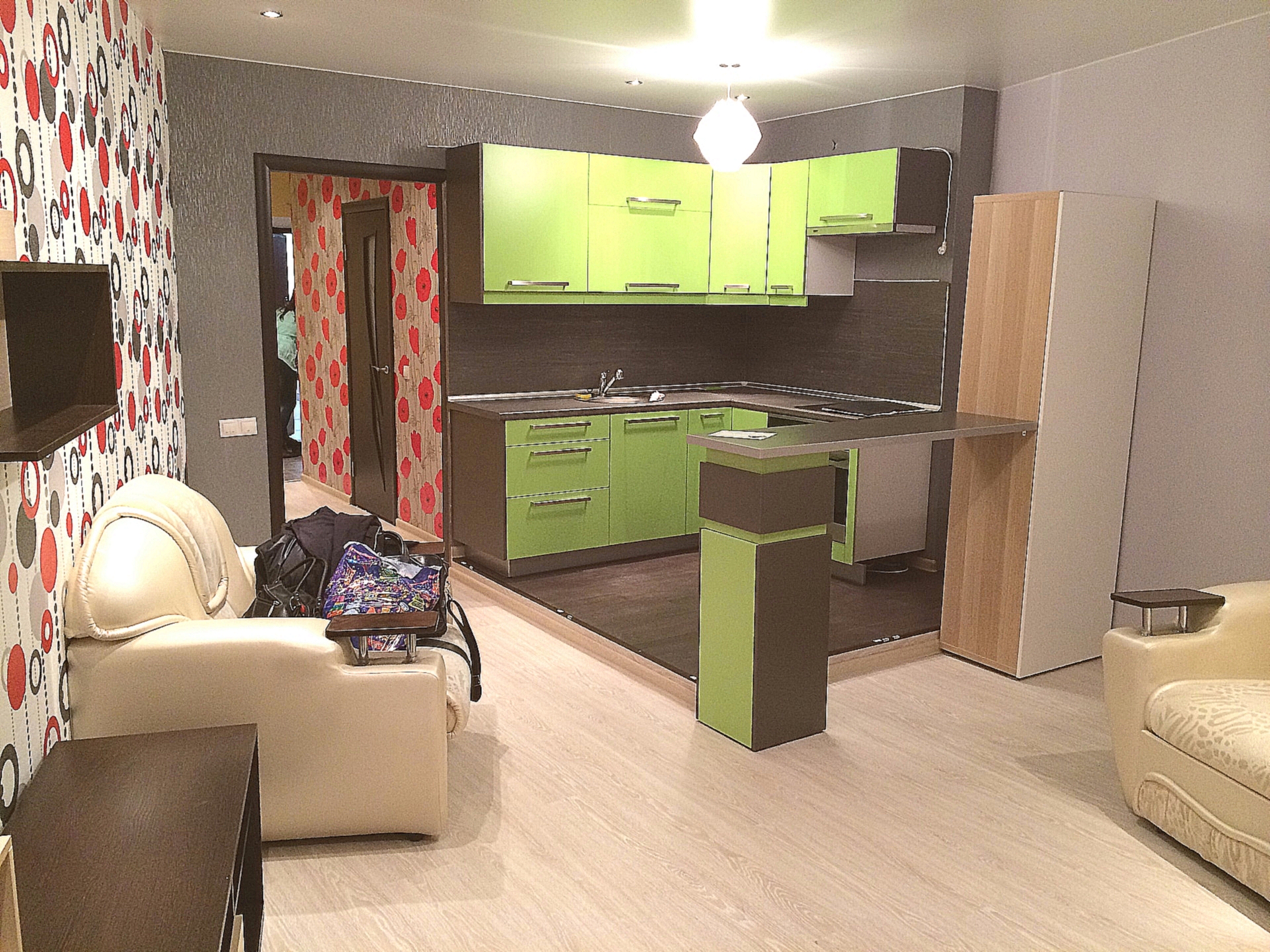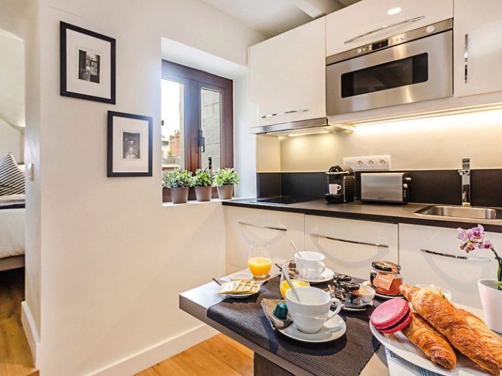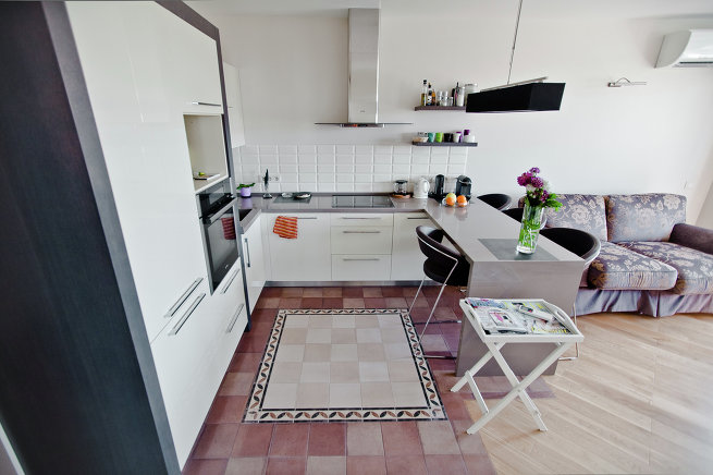 - Secondly, do not overload the apartment with furniture. For the kitchen, use the built-in appliances, install transforming furniture of small dimensions in the living room;