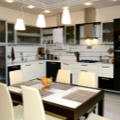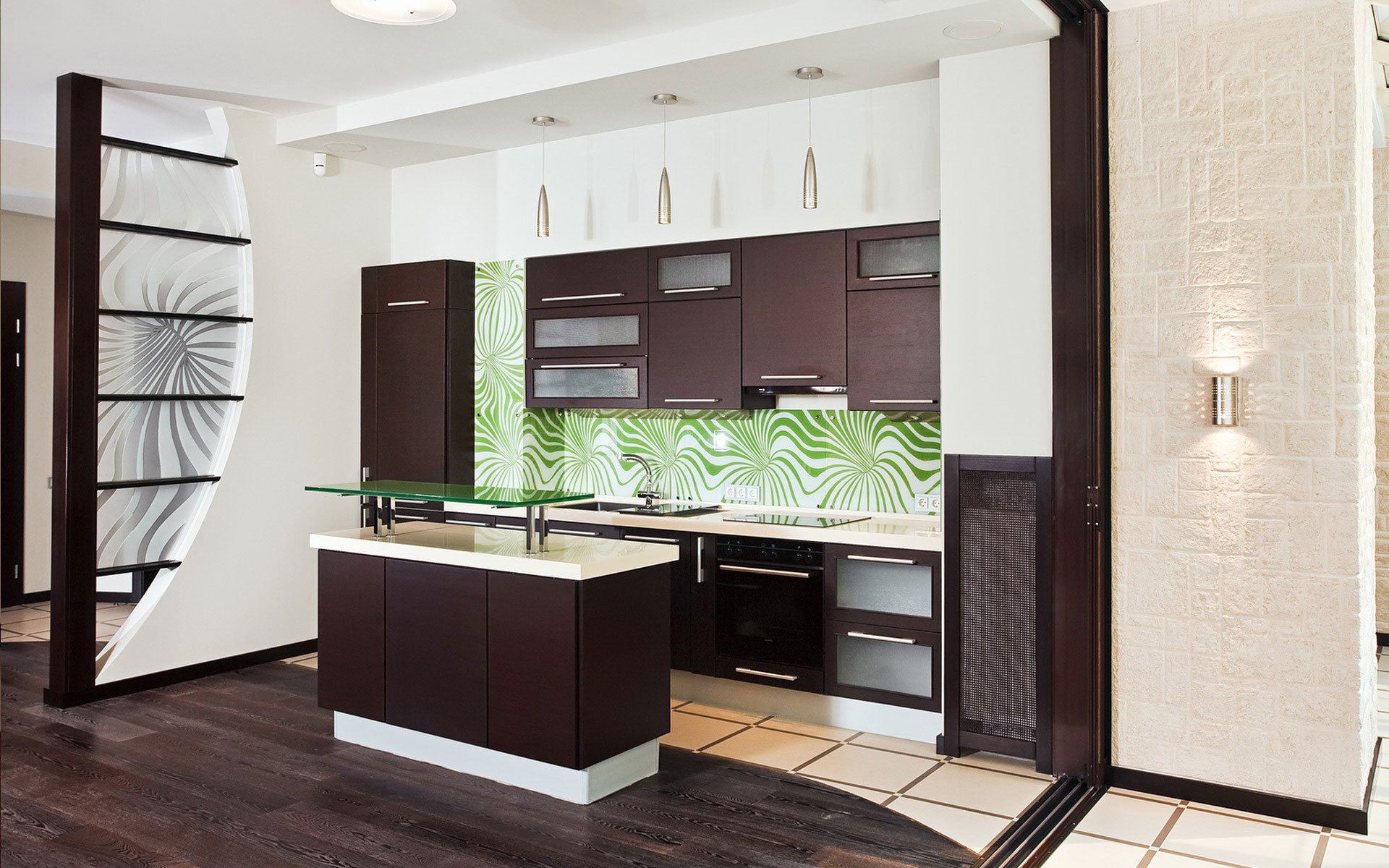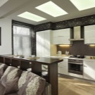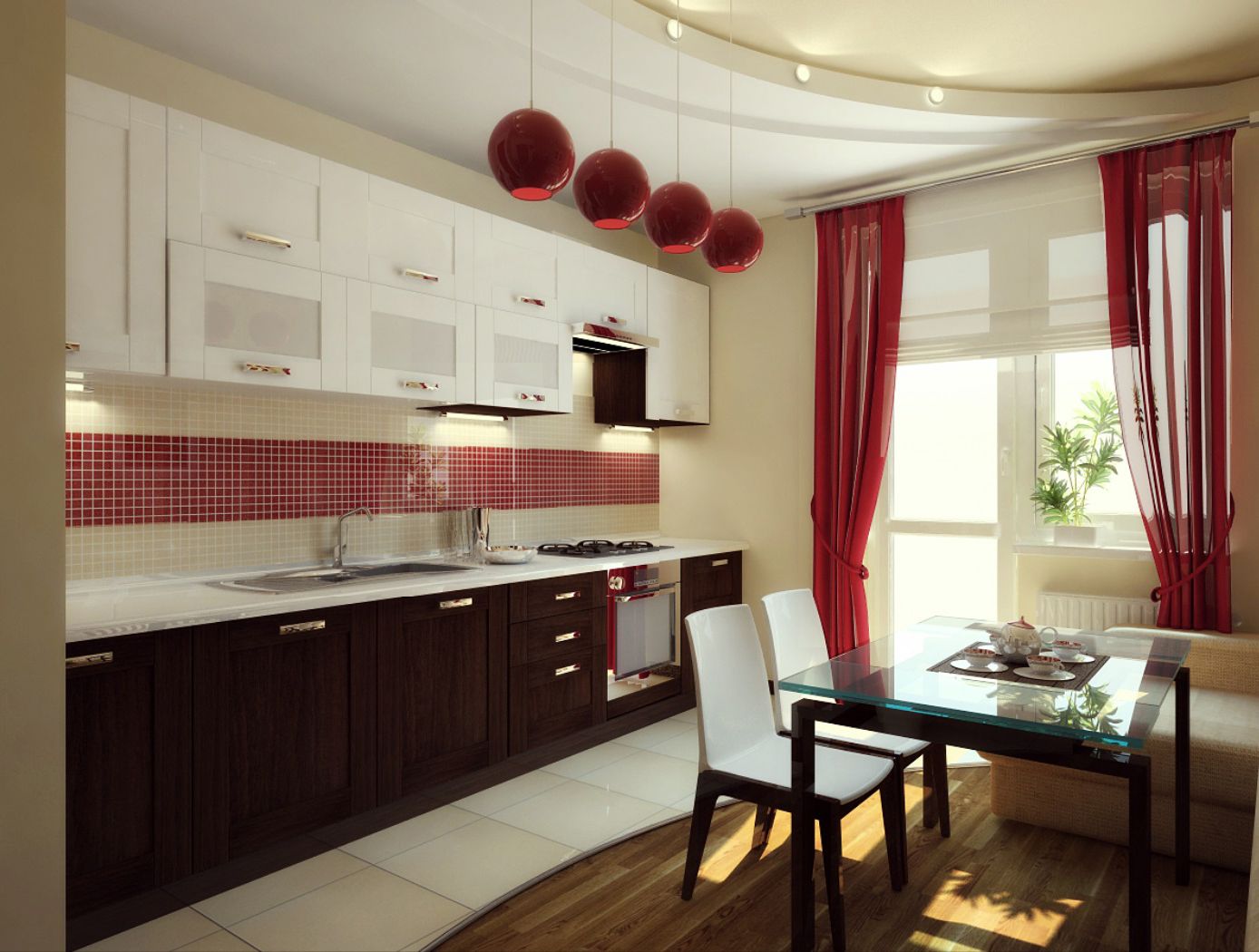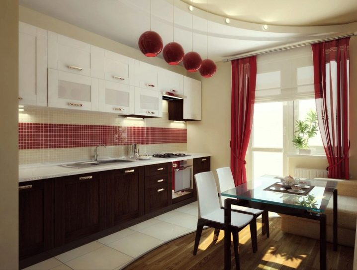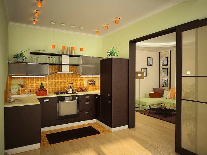 A large number of dark shades in the interior of the kitchen-studio visually reduce the space. If the area is small, you should not use a lot of black, dark brown, purple flowers. Cozy and lighter room will make warm colors and shades.
