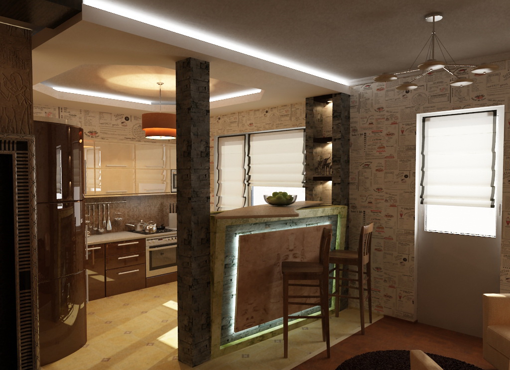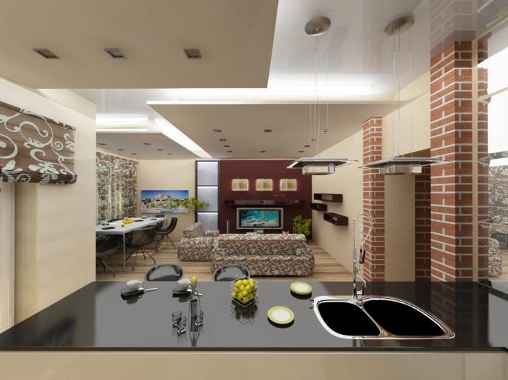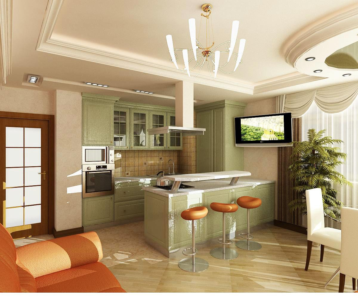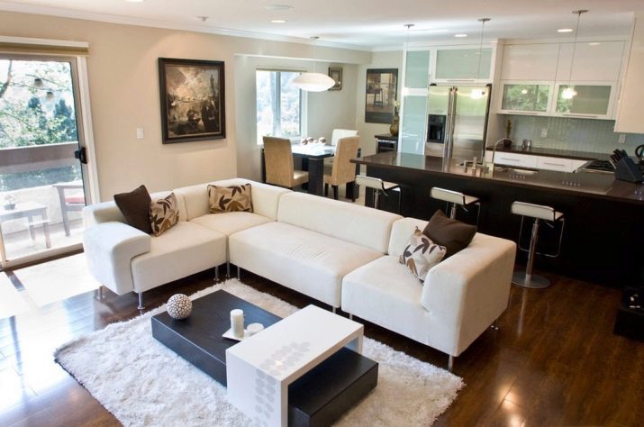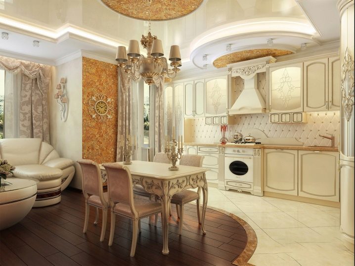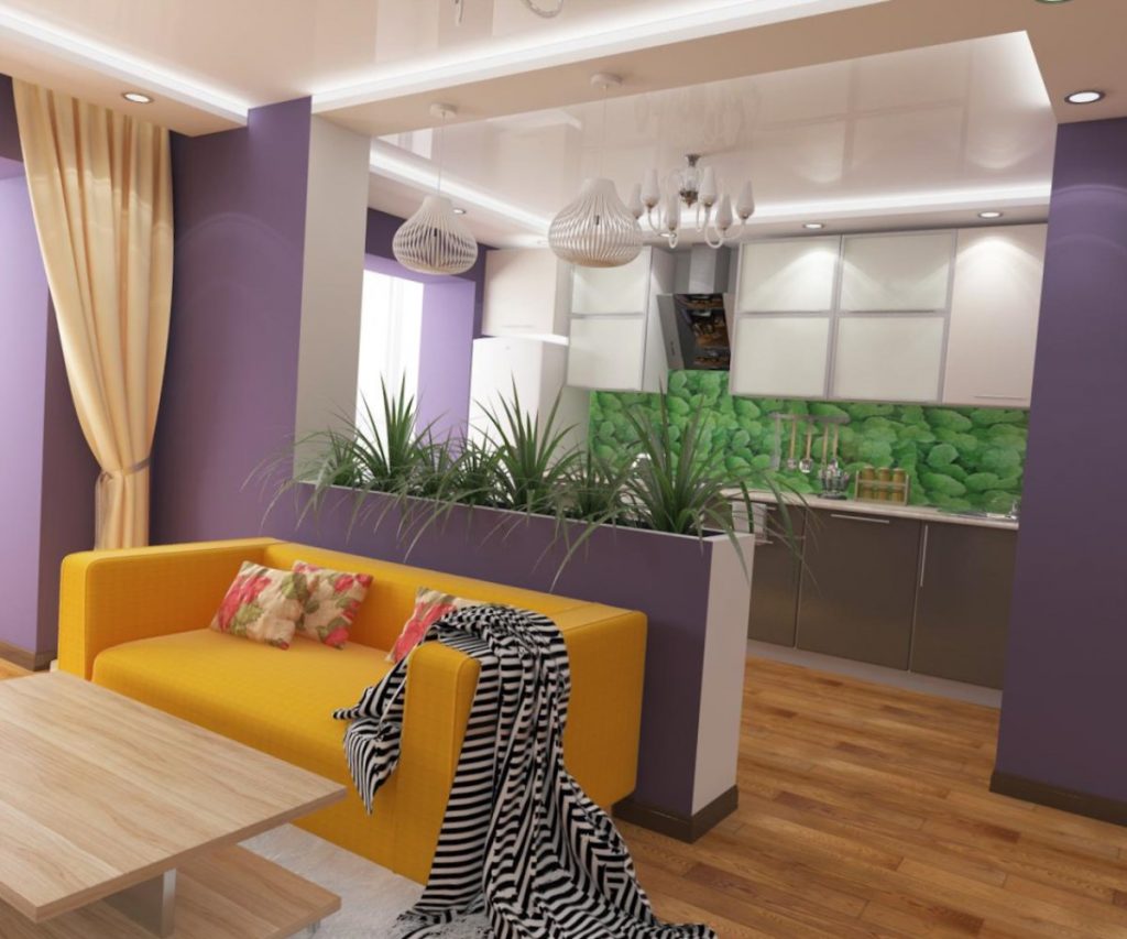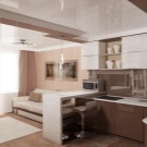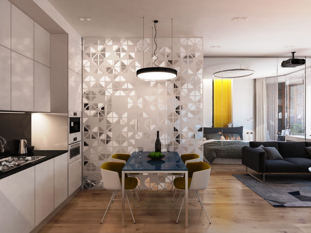 To competently combine the space of the kitchen in a one-room apartment or in the studio you need to know about some of the nuances. Compliance with them will help to properly distinguish between all indoor areas, so that each household has got its own "corner".