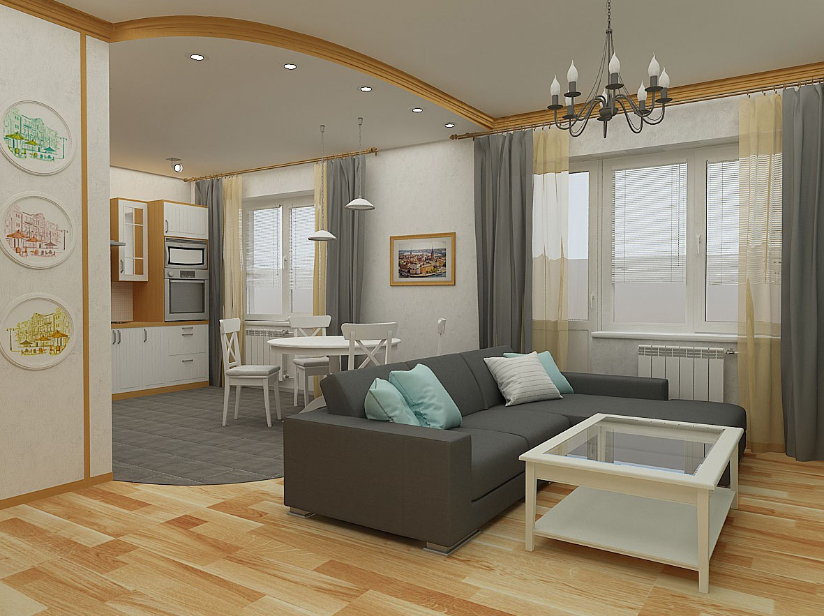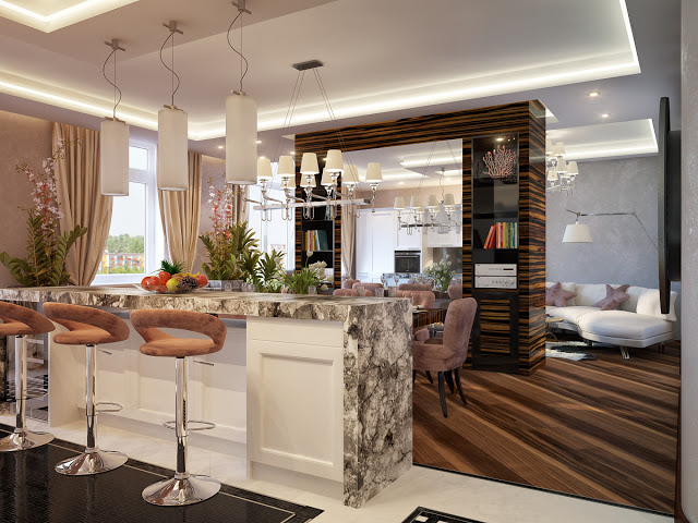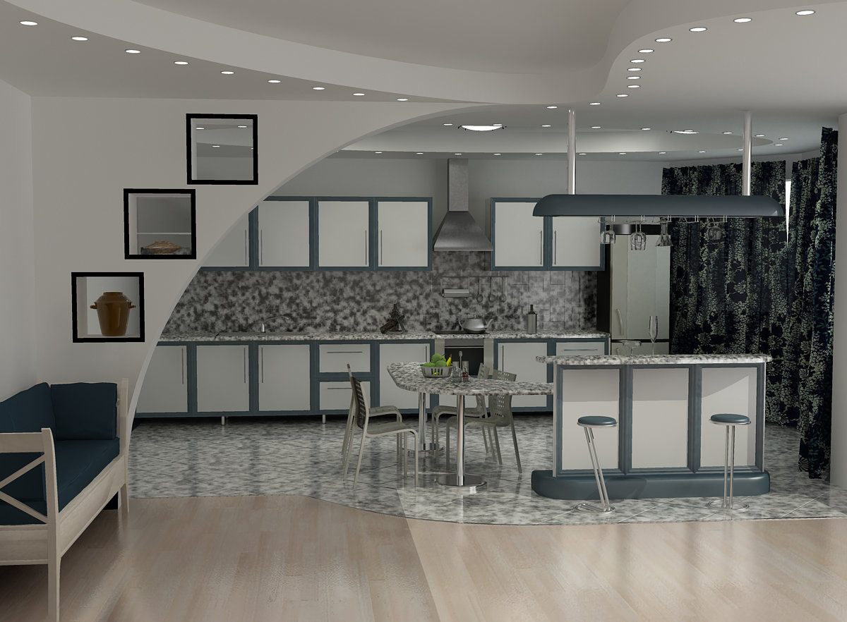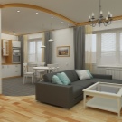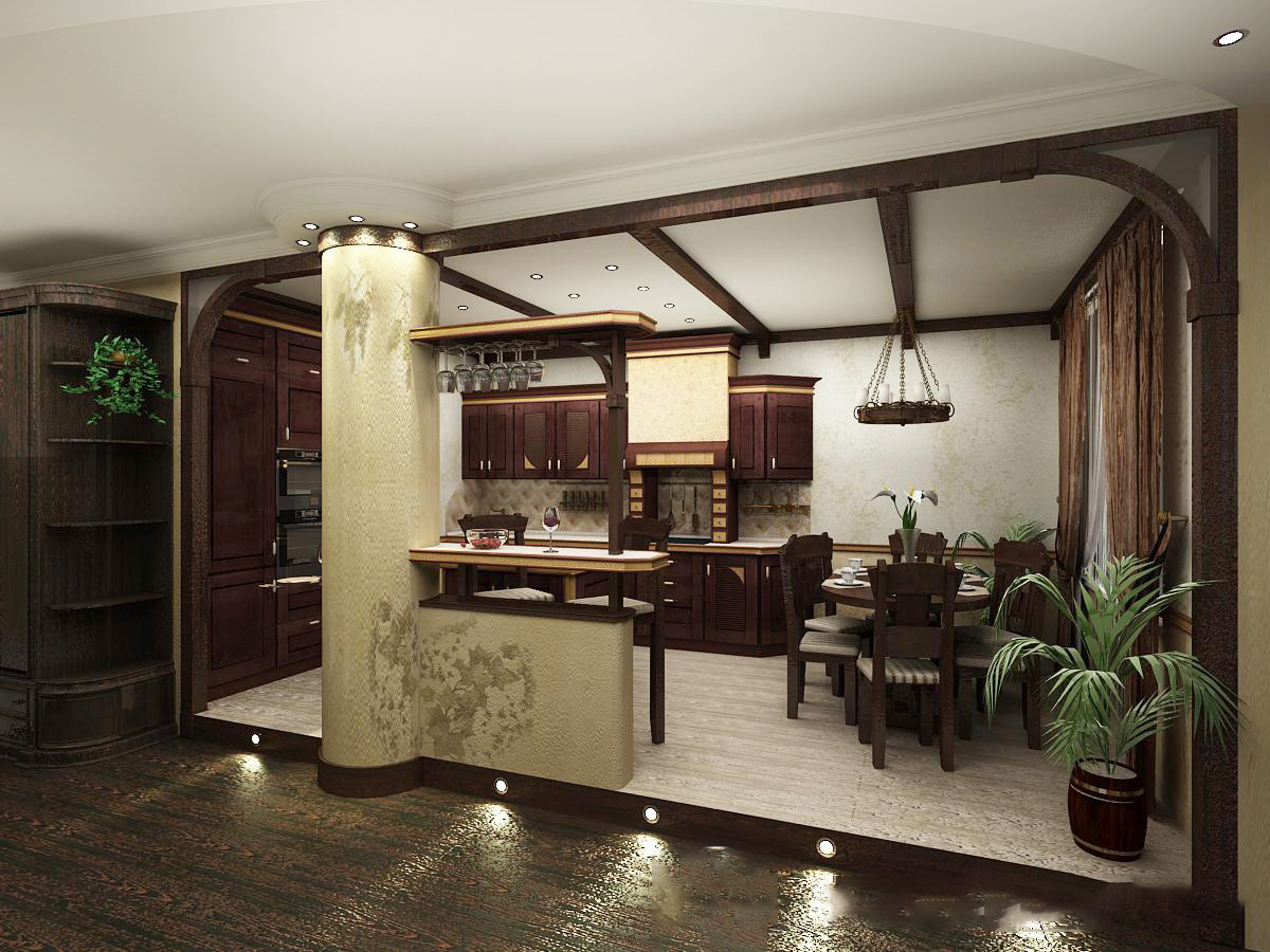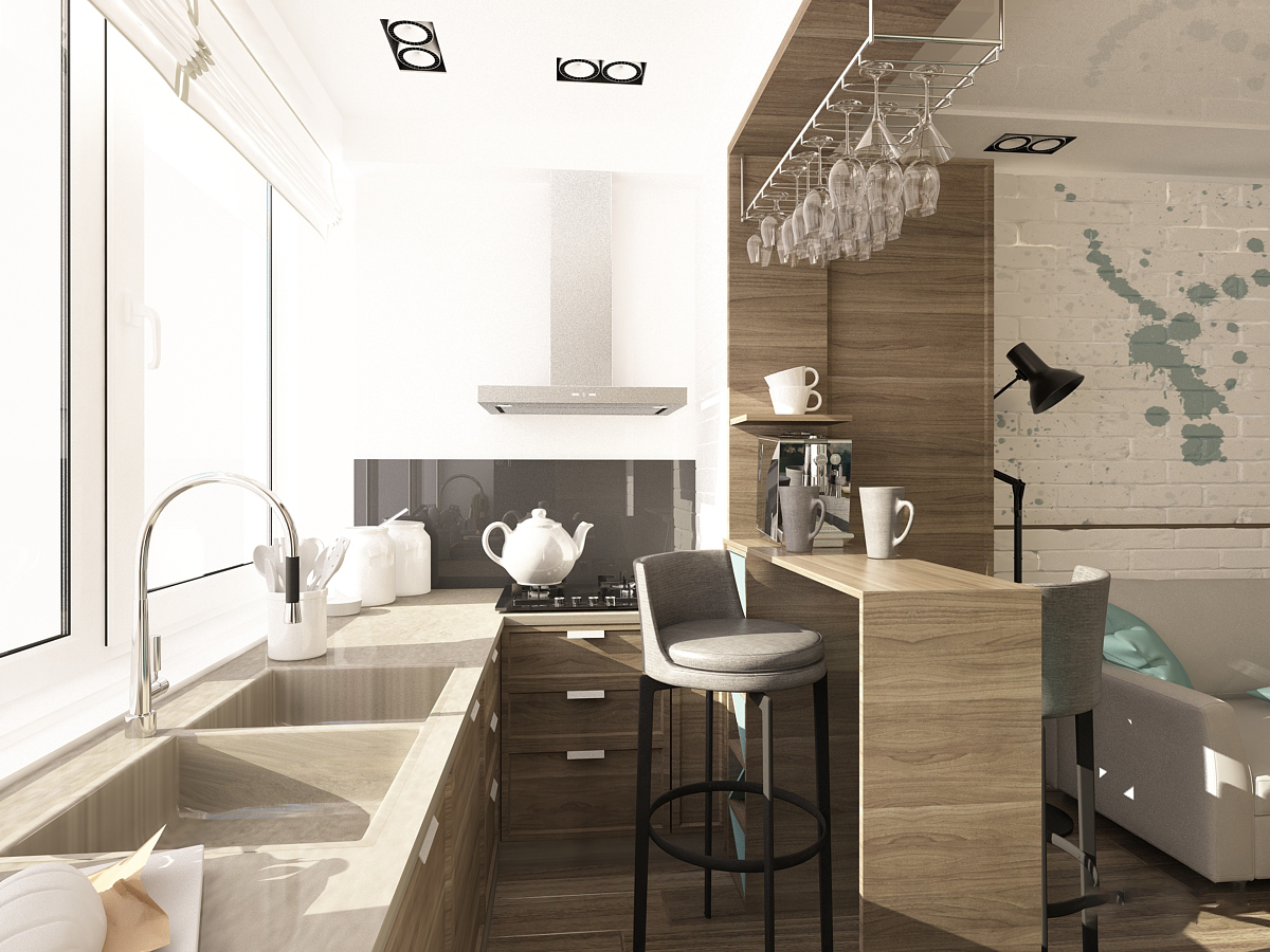 To competently combine the space of the kitchen in a one-room apartment or in the studio you need to know about some of the nuances. Compliance with them will help to properly distinguish between all indoor areas, so that each household has got its own "corner".