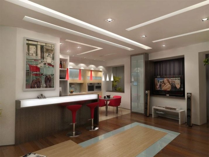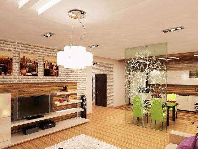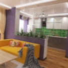 In order for each family member to spend time at home comfortably, be sure to use zoning. In modern design, many options have been developed and applied: multi-level premises, zoning with color, furniture or sliding partitions, bar counters with additional designs for fruits and dishes.